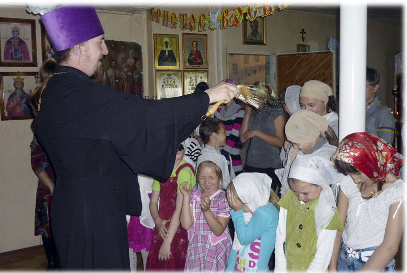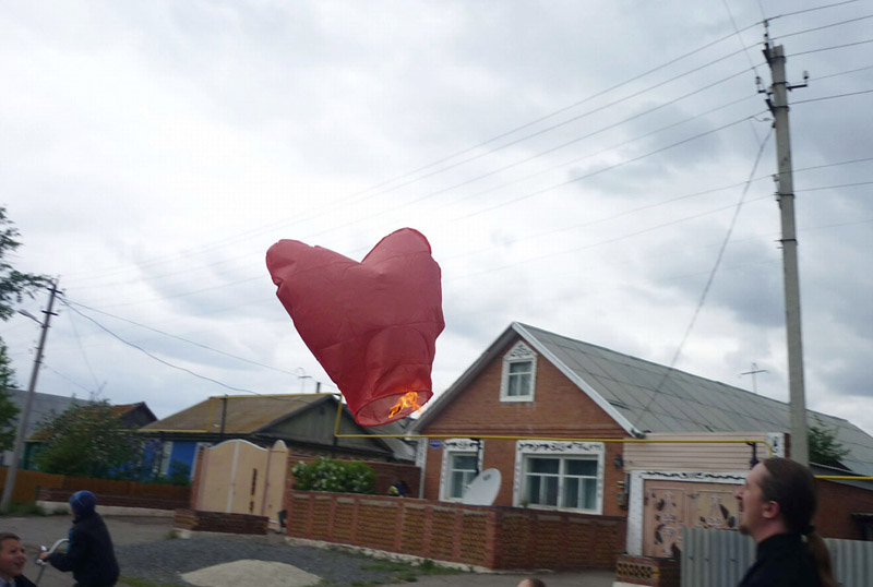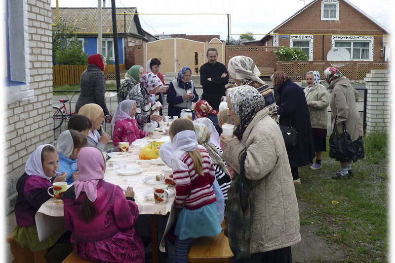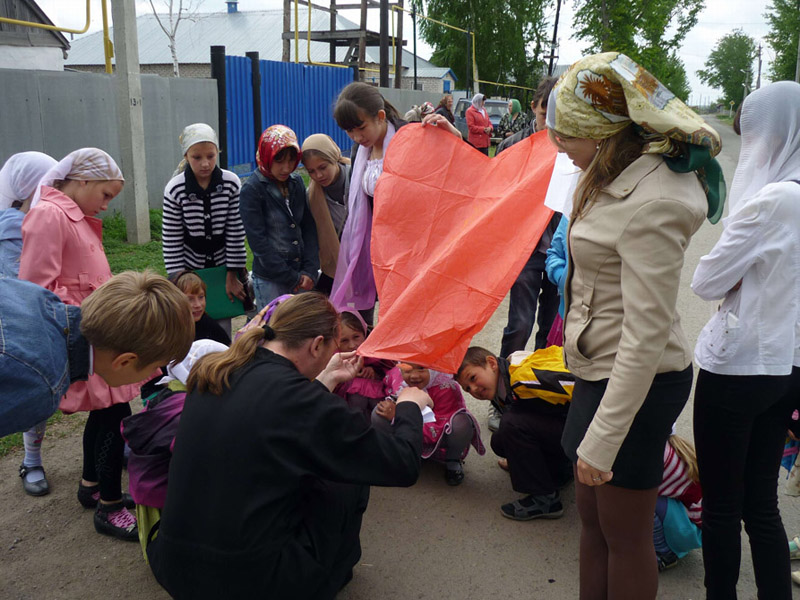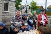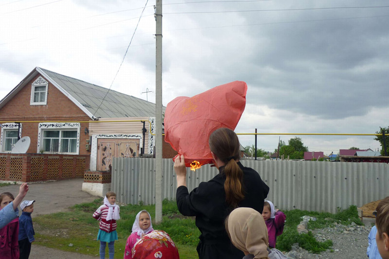 После окончания официальной части состоялось чаепитие и общение на свежем воздухе возле храма. А затем дети вместе с батюшкой Владимиром, настоятелем храма, запустили в небо воздушный фонарь. Он улетел, а праздничное настроение осталось...
