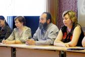 На встрече обсуждались вопросы духовного мира семьи как основы духовно-нравственного воспитания учащихся. Присутствующие на встрече инспектор детской комнаты милиции и руководитель психологической службы обратили внимание собравшихся на то, что именно в семье происходит формирование человека как гражданина и члена общества. В своем выступлении отец Александр уделил особое внимание духовному миру внутри семьи, так как семья является хранительницей духовных ценностей, краеугольным камнем человеческого общества.