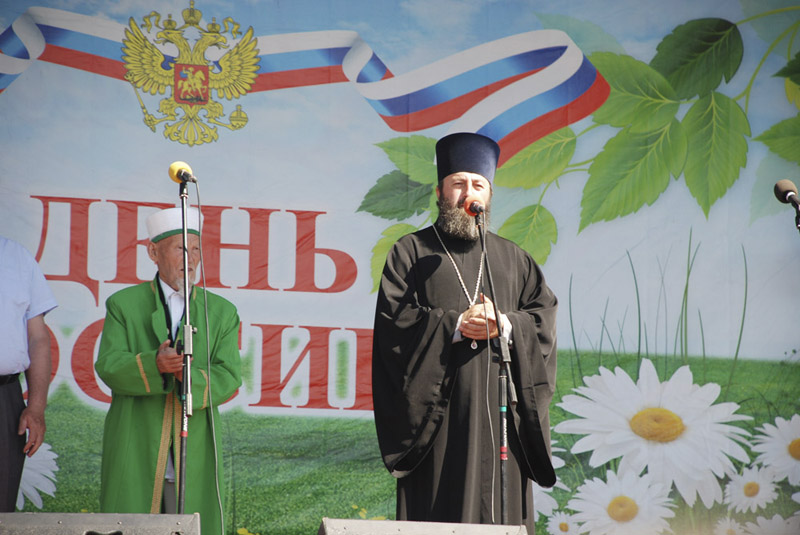 ОРСК. 12 июня 2013 г. В ЦПКиО им. В.П.Поляничко прошли мероприятия, посвященные дню России. В числе почетных лиц на празднике присутствовал благочинный Орского округа, настоятель храма Преображения Господня протоиерей Александр Куцов.