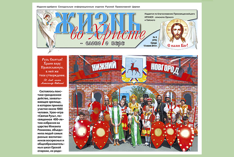 Центральную часть номера занимает репортаж с исторического урока в игровой форме «Святая Русь», посвященного 400-летию избрания на царство Михаила Романова. В этом грандиозном, захватывающем действе приняло участие около 1000 человек: воспитанников воскресных и общеобразовательных школ Орской епархии, их родителей, преподавателей и священнослужителей.