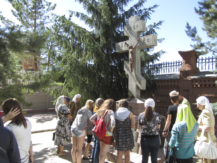 К полудню паломники прибыли в Свято-Троицкую Семеонову обитель милосердия поселка Саракташа и удивились ее благолепию и величию. Экскурсовод провел гостей по территории и рассказал о святынях обители, поклонном кресте с именами священнослужителей, убиенных во время репрессий в Оренбургской области. Молодые люди не хотели прощаться с этим красивым местом и пообещали еще приехать.