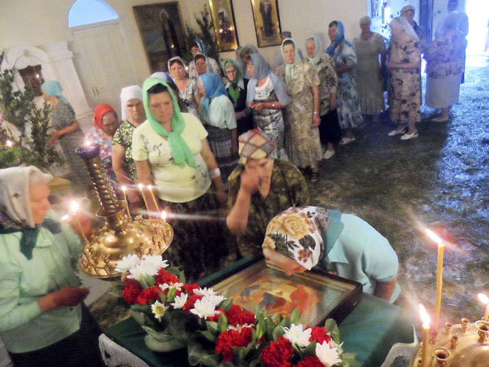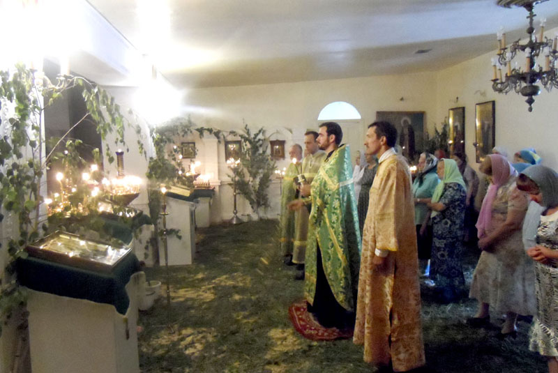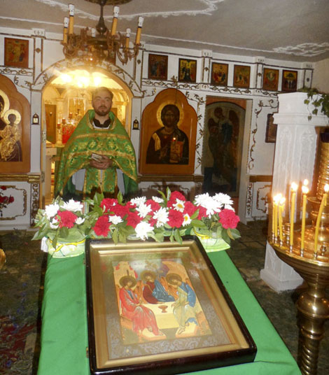 Далее, как и во всех церквах Русской Православной Церкви, была совершена особая служба с коленопреклонными молитвами - вечерня в воспоминание сошествия на святых апостолов Духа Утешителя.