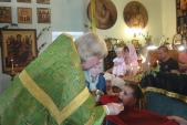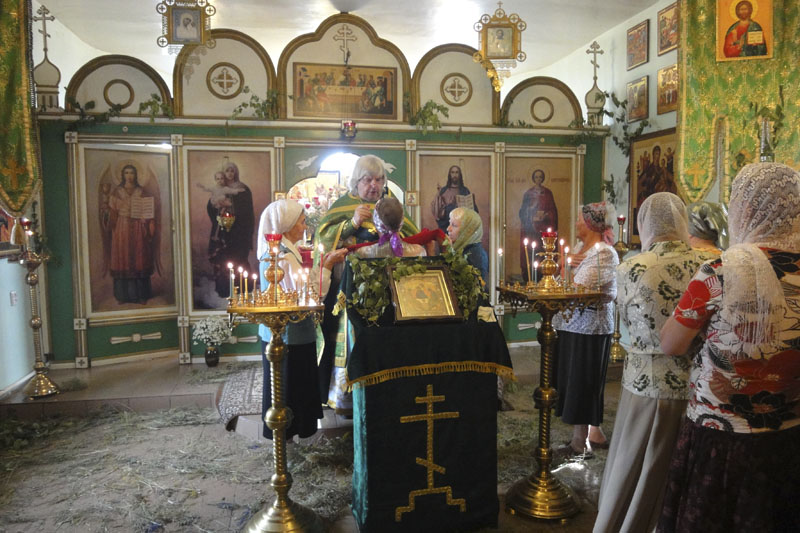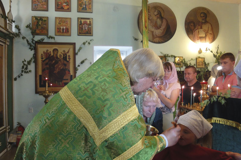 В Троицу в храме всегда много маленьких прихожан, много тех, кто приходит первый раз и вместе с Троицким букетом вдыхает неповторимый аромат истины, делая первые шаги к постижению Бога. Таким людям батюшка всегда дарит в этот праздник иконы, подсвечники, акафисты.
