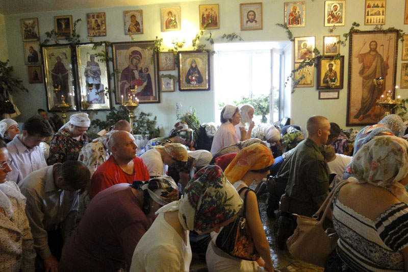 Но тонкий запах березовых веток, столь редких в наших степях, перебивает другие, становится доминирующим. Как говорит игумен Онисим, нужно быть бережным к земле, на которой дал нам жить Господь, к её несметному богатству, так лелеющему душу православного человека, чувствующего красоту Божиего мира. Нельзя допускать излишества и грубости. Березовые ветки срезаются деликатно, чтобы не повредить дерево – символ православной Руси.