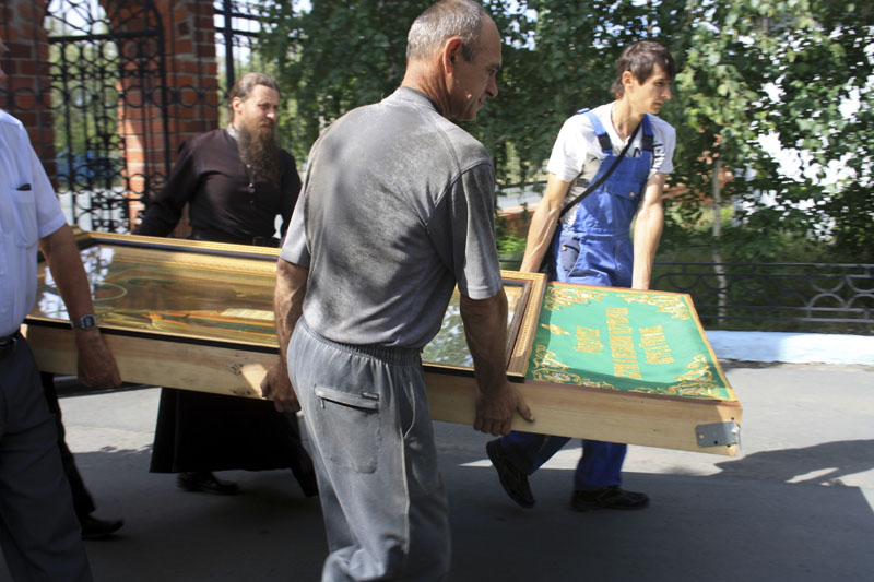 ОРСК. 1 июля 2013 г. Сегодня в храм Покрова Пресвятой Богородицы (бывший монастырь) была доставлена икона с частицами мощей святого благоверного князя Петра, в иночестве Давида, и святой благоверной княгини Февронии, в иночестве Евфросинии, Муромских чудотворцев.
