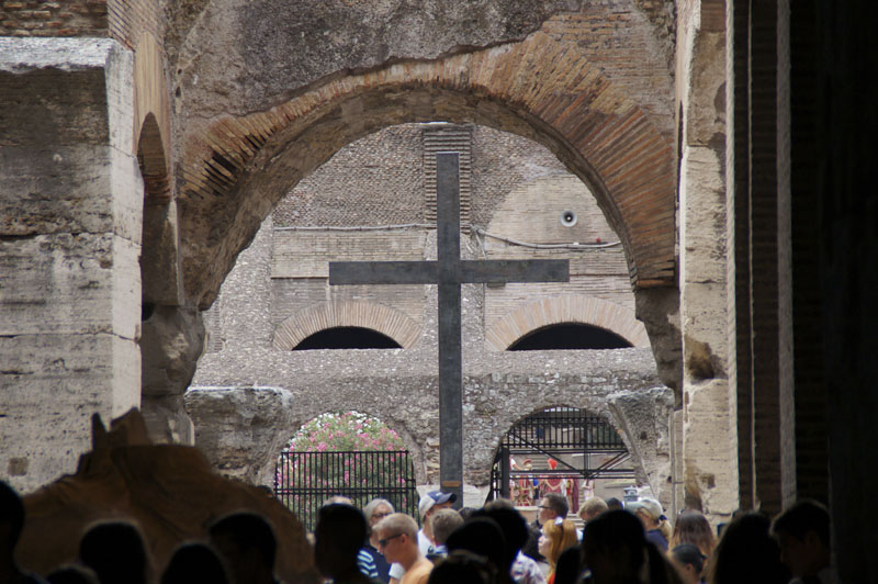 Проходя мимо Колизея, нельзя не вспомнить мучеников за Христа. Мучения христиан в Колизее, начавшиеся при Трояне, продолжались целых два века, почти при всех его преемниках. Нет сил и возможности перечислить имена всех мучеников, пострадавших за это время на арене Колизея; их были не десятки и не сотни, а многие тысячи. Кровь их насквозь пропитала всю землю в Колизее.