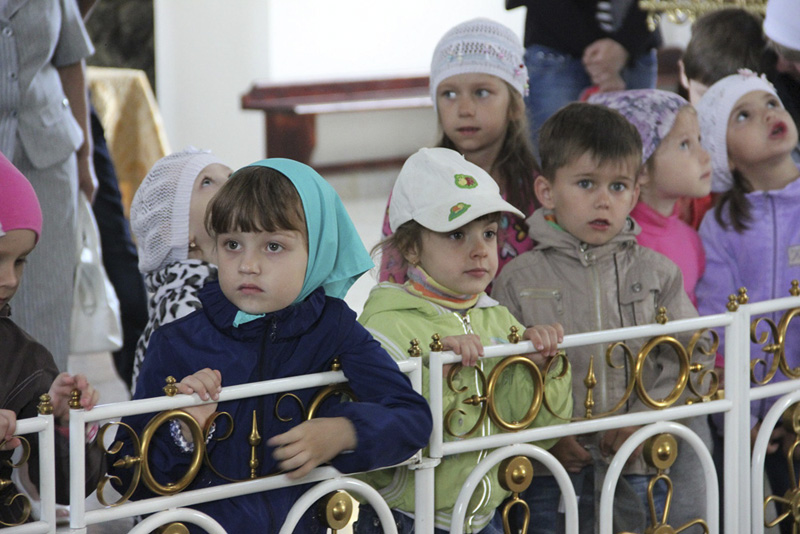 НОВОТРОИЦК. 3 июля 2013 г. В храме святых апостолов Петра и Павла г. Новотроицка состоялась экскурсия для дошкольников, которою провели воспитанники краеведческого кружка при городском музейно-выставочном комплексе, действующем под руководством Ирины Фурсовой.