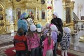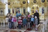 Ребята рассказали малышам об устройстве храма, о благодетелях и строителях. Руководитель краеведческого кружка Ирина Алексеевна в преддверии празднования Дня семьи, любви и верности поведала собравшимся о святых благоверных князе Петре и княгине Февронии Муромских. Малыши с большим интересом отнеслись к увиденному и услышанному.