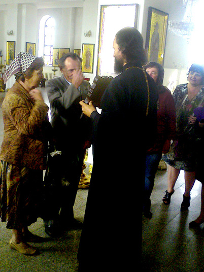 НОВОТРОИЦК. 3 июля 2013 г. В преддверии Всероссийского дня семьи, любви и верности благочинный Новотроицкого округа, настоятель прихода храма св. первв. апп. Петра и Павла г. Новотроицка иерей Сергий Кваша совместно с Советом женщин г. Новотроицка чествовал семейную пару, прожившую в браке более 50 лет.