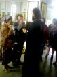 В беседе с отцом Сергием супруги Тонеевы рассказали, что живут очень счастливо и о своём главном выборе в жизни ни разу не пожалели. Священник благословил пару иконой святых благоверных кн. Петра и кн. Февронии Муромских, которою преподнесли члены женсовета.