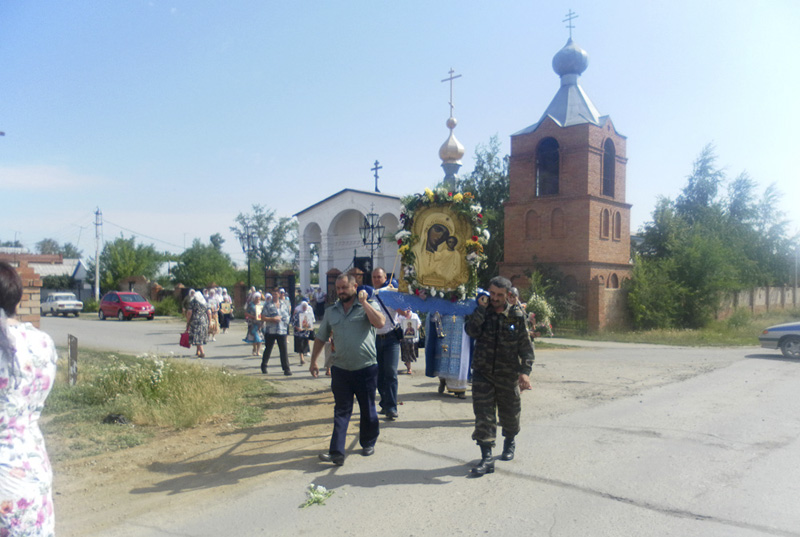 Крестный ход начался сразу после Божественной литургии и молебна. В торжественном шествии активное участие принимали казаки хуторского казачества, прихожане храма Преображения Господня, а также жители поселка. Православные обращались к Пресвятой Богородице, умоляя Владычицу о покрове и защите от бед.