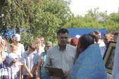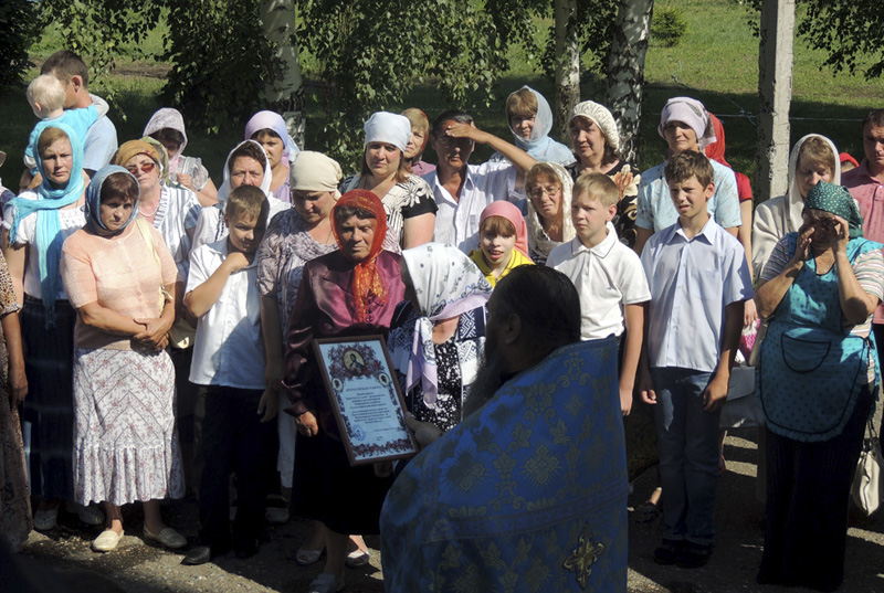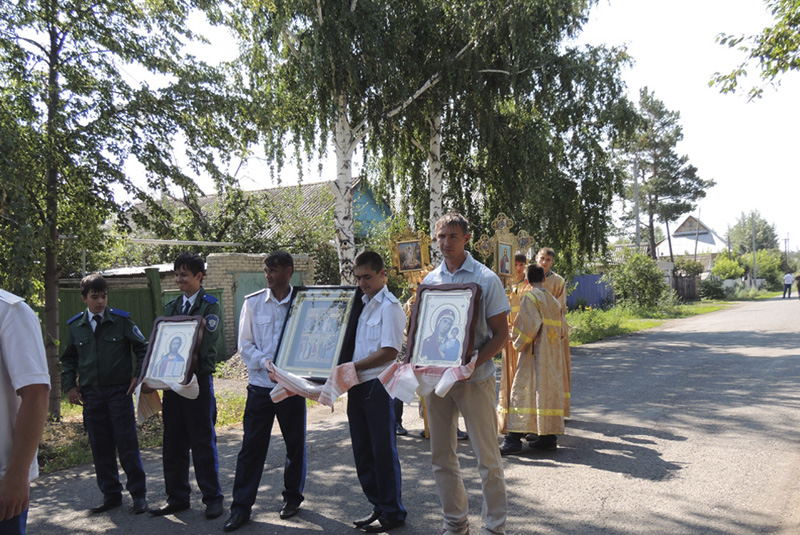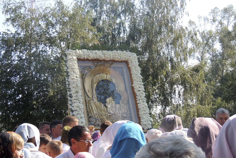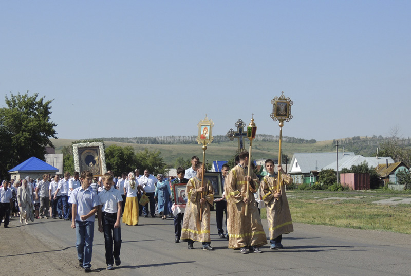 Настоятель храма протоиерей Симеон Антипов совершил молебен с водоосвящением и акафистом Табынской иконе Божьей Матери. В этот же радостный для православных день батюшка вручил архиерейскую грамоту заместителю главы администрации района А.Усанову за усердную помощь Церкви. Затем прихожане совершили крестный ход вокруг церкви, после чего с молитвенными песнопениями пошли крестным ходом по городу.