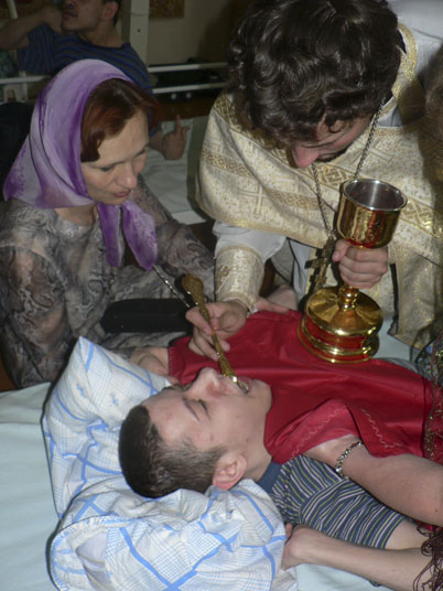 10 июля в очередной раз священник храма св. прав. Иоанна Кронштадтского иерей Максим Малюта вместе с матушкой Светланой Солониной посетили ДДИ. Ребята были очень рады гостям. В молитвенной комнате совершена Божественная литургия, за которой причастилось около 150 детей. Святых Христовых Таин приобщились также детишки, которые практически не встают с постели. Это событие не могло оставить никого равнодушным. Чувствовалась огромная и искренняя радость, которая переполняла детские сердца.