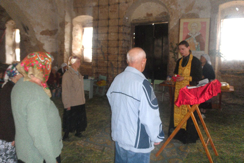 Поездку совершил клирик храма святителя Николая Чудотворца города Медногорска (микрорайон «Южный») иерей Александр Курсаков. В восстанавливающемся храме пророка Божия Илии был совершен молебен с водоосвящением и заупокойная лития. Желающие смогли покаяться в своих грехах и приобщиться Тела и Крови Христовых. По окончании богослужений священник рассказал о трагической судьбе святых Царственных страстотерпцев и о том, как православному христианину важно уповать на Господа и Его святую волю. Также в храм села в дар были переданы иконы Спасителя, Богородицы и святых угодников Божьих.