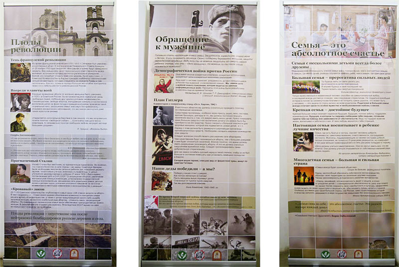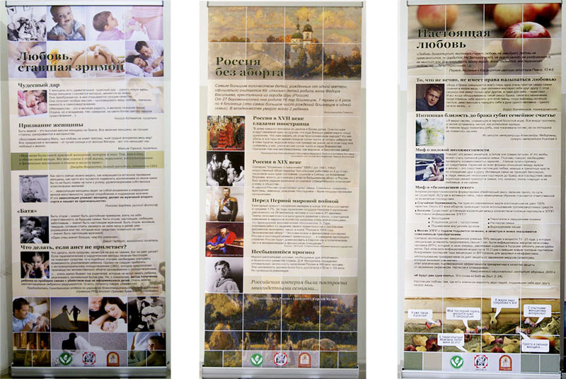Выставка состоит из 20 стендов. Часть из них рассказывает о традиционных семейных ценностях: любви, воспитании детей, отцовстве и материнстве. Другая часть стендов повествует о проблеме искусственного прерывания беременности: истории отношения человечества к этому явлению, причинах его легализации, причинах аборта в современном обществе, способах умерщвления неродившихся младенцев, недопустимости и вреде контрацепции, последствиях прерывания беременности для здоровья женщин и многом другом. Выставка действует уже более чем в 30 епархиях РПЦ МП.