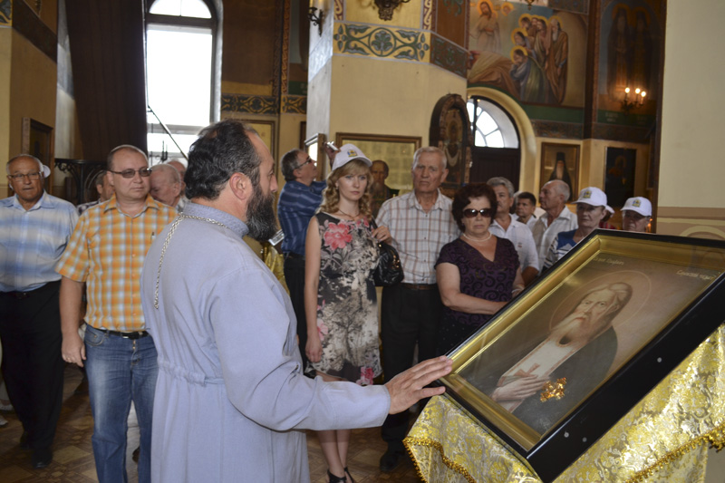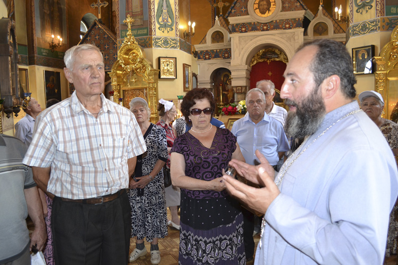 Делегацию в 40 человек сопровождал зам. главы администрации Орска по социальным вопросам Владимир Васькин. Встретил гостей настоятель храма, благочинный Орского округа протоиерей Александр Куцов. Он рассказал об историческом прошлом храма и горы Преображенской, а также о нынешней жизни прихода, о работе православной гимназии. Батюшка познакомил ветеранов со святынями храма. Гости остались очень довольны.