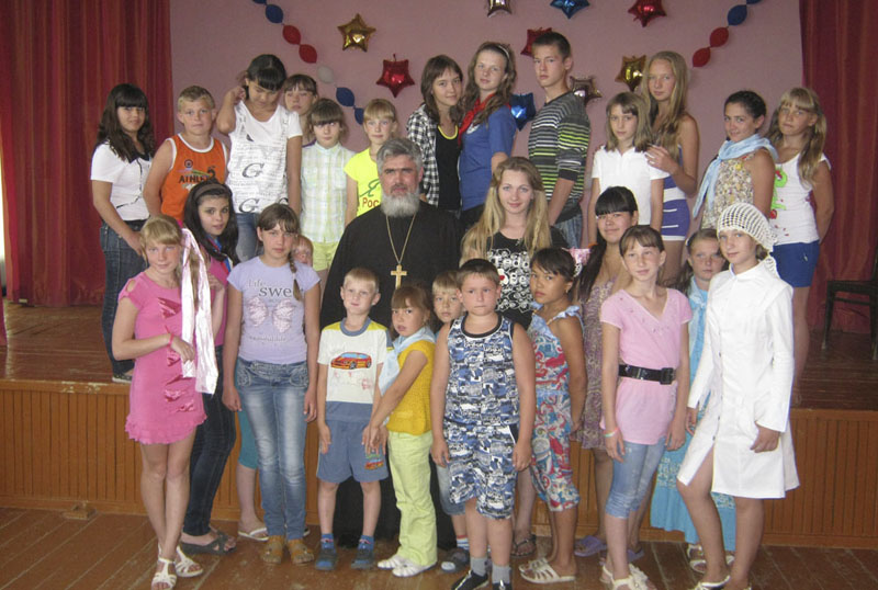 АДАМОВКА. 26 июля 2013 г. Накануне празднования 1025-летия Крещения Руси благочинный Адамовского округа иерей Вячеслав Кочкин провёл три встречи в детских лагерях, действующих при Адамовских школах и Центре развития детского и юношеского творчества.
