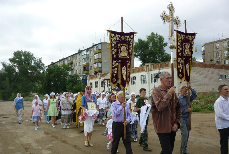 Несмотря на то, что погода менялась на глазах, появились ветер и тучи, настоятель храма иерей Вячеслав Коротков со своей паствой крестным ходом проследовали к будущему монастырю в знак молитвенной поддержки этого благого дела. У стен монастыря помолились Богородице, прося ее покровительства.