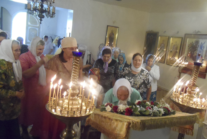 В канун праздника, 13 августа, на утрени, во время пения Великого славословия, из алтаря на середину храма священник совершил вынос Креста для всеобщего поклонения.