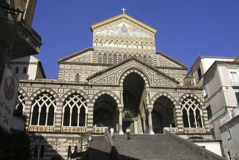 Кафедральный собор Святого Андрея Первозванного, построенный в арабско-нормандском стиле в 833 г., является жемчужиной старинного романского города Амальфи. Здесь, в крипте, под центральным алтарем покоятся мощи святого апостола Андрея, перенесенные из Константинополя в Амальфи в 1206 г. по приказу епископа Пьетро Капуанского. С 29 ноября 1304 г. мощи святого мироточат.
