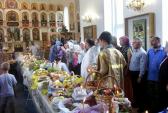 Верующие приносили плоды для освящения. Нарядно и празднично выглядели столы, уставленные корзинами, блюдами, полных яблок, груш, винограда, виктории и другими плодами, выращенными руками прихожан нашего храма. После Литургии, которую совершил благочинный Медногорского округа, настоятель храма протоиерей Симеон Антипов, состоялся водосвятный молебен с освящением всего принесенного. С радостью делились все благодатными плодами, не забывая жертвовать на храм, придерживаясь древней традиции отдавать часть нового урожая.