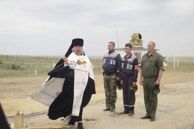 ЯСНЫЙ. 21 августа 2013 г. Настоятель храма святого великомученика и Целителя Пантелеимона игумен Онисим (Пашинов) много лет окормляет военнослужащих и является настоятелем приписного воинского храма святого благоверного Александра Невского. По просьбе командования дивизии отец Онисим освятил ракету, которая поднимется в воздух 22 августа, и площадку запуска.