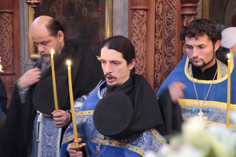 МОСКВА. 8 сентября 2013 г. В день памяти сретения Владимирской иконы Божией Матери два клирика Орской епархии служили в Московском Ставропигиальном Сретенском монастыре.