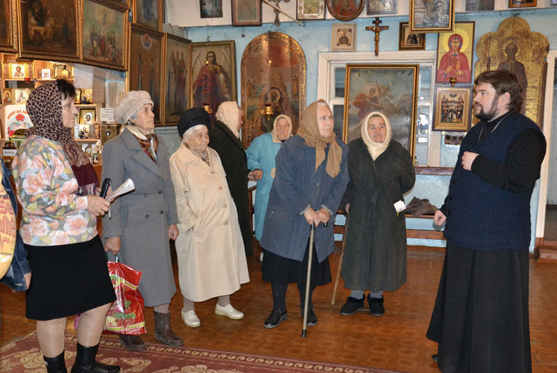 Немощных пожилых людей работники прихода встретили возле крыльца, помогли выйти из автобуса и подняться по ступеням, в храме поставили для них стулья. Настоятель храма иерей Андрей Пелипенко отслужил Божественную литургию, исповедовал и причастил всех приехавших в этот день в храм. По окончании богослужения отец Андрей провёл экскурсию по храму, рассказав гостям о почитаемых храмовых иконах. Закончилась тёплая встреча совместной трапезой, во время которой отец Андрей ответил на многочисленные вопросы гостей, касающиеся духовной жизни.