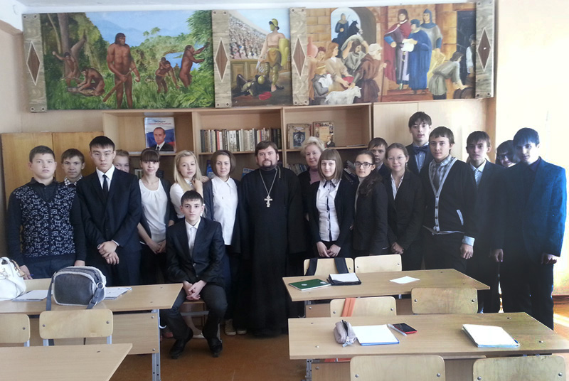 МЕДНОГОРСК. 23 октября 2013 г. В рамках проведения профилактики детской преступности настоятель храма святителя Николая Чудотворца г. Медногорска п. «Заречный» иерей Андрей Пелипенко посетил Медногорскую гимназию №3 с целью беседы со школьниками.