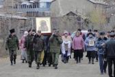 После богослужения жители поселка вместе с батюшкой и казаками, несущими святой образ, крестным ходом прошли до восстанавливающегося храма святого пророка Божия Илии. Там также был отслужен краткий молебен, а затем все желающие могли приложиться ко святыне.