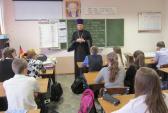 ОРСК. 29 октября 2013 г. По приглашению директора школы Людмилы Пузановой и классного руководителя 7 класса Марины Серебрянской клирик храма св. вмч. Георгия Победоносца иерей Андрей Ионов провел беседу со школьниками.