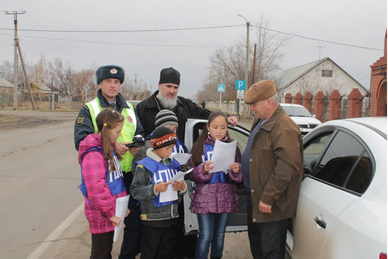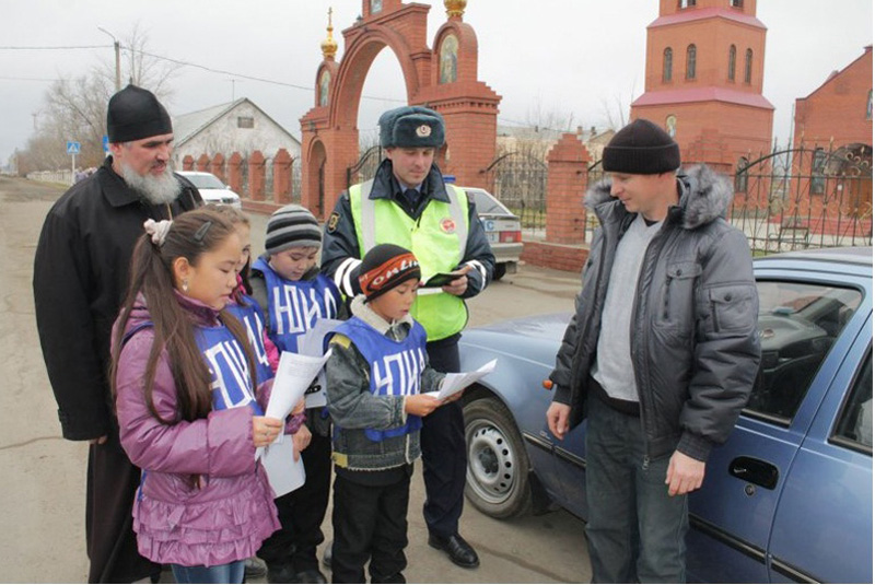 АДАМОВКА. 6 ноября 2013 г. Сотрудники ГИБДД МОМВД России «Адамовский» в рамках оперативно-профилактического мероприятия «Пристегни самое дорогое» провели акцию с раздачей памяток. Приняли в ней участие юные помощники инспекторов дорожного движения и член общественного совета иерей Вячеслав Кочкин.