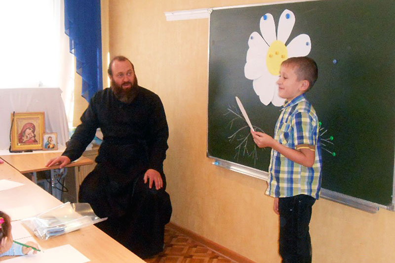 Вторая часть урока – молитва. Здесь ребята не только все вместе вспомнили молитву «Богородице Дево, радуйся», но и познакомились с неотъемлемым элементом монашеской молитвы – четками.