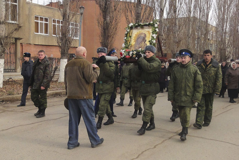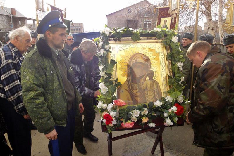 Встретили икону 9 ноября. Оренбургские казаки передали эстафету военнослужащим части, которые с хоругвями и иконами благоговейно понесли образ Богородицы по улицам Ясного. Местные казаки также приняли участие в шествии. Традиционно в крестном ходе участвовали представители администрации Ясненского района с заместителем главы администрации по соц. вопросам О. Рогозной. Крестный ход двигался по направлению к храму св. вмч. и целителя Пантелеимона под духовные песнопения приходского народного хора и молитвенные возгласы настоятеля храма игумена Онисима (Пашинова). Шествие сопровождали представители полиции и ДПС. В конце крестного хода Табынскую икону Божией Матери бережно внесли в храм, где встречали её прихожанки, величанием приветствуя святыню Оренбургского края.