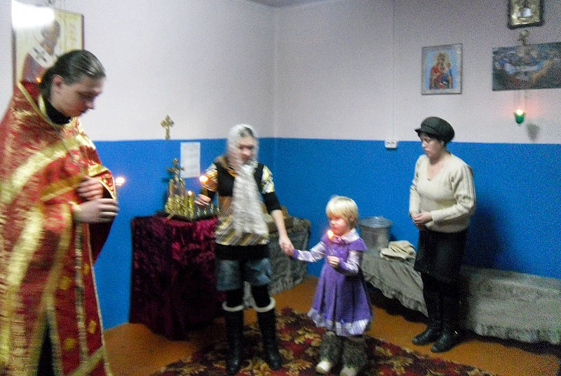 В этот день в поселке на одного христианина стало больше – на этот раз им стала пятилетняя девочка Ника (Виктория). Ее мама и восприемница хорошо знакомы с Православием не только из книг, но подтверждают свои знания следованием за Христом в своей жизни. После Таинства Крещения пришедшие причастились Тела и Крови Христовых. Был совершен молебен с водоосвящением и заупокойная лития. Отец Александр рассказал собравшимся о том, что для верующего важно в своей жизни руководствоваться Священным Писанием и что очень опасно надеяться на себя и свои мысли, которые могут привести ко греху в любой момент.