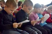 Колокол не дал проспать воскресную Литургию. Замечательно, что в Новотроицком соборе почти одновременно проходят два богослужения. Мы спустились в нижний храм на «детскую» Литургию: здесь алтарничают и поют ученики воскресной школы. Служил настоятель протоиерей Сергий Кваша и иерей Сергий Новиков. На службе очень много детей с родителями. Нам показалось, что это одна большая семья. Среди большого количества причастников оказались и наши следопыты.