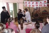 Около сотни детей, как из самого райцентра, так и из иных сёл района, приняли участие в познавательном мероприятии, которое прошло в районном Доме культуры «Колос». Начало положено было общей молитвой. Затем дети, водимые (согласно сценарию) Ангелами-хранителями, отправились по игровым станциям обучаться различным навыкам, чтобы не были потеряны ремесла на нашей земле. Ребята узнали, как оказывать первую медицинскую помощь, как вести себя в опасных для жизни чрезвычайных ситуациях, как устроено и работает оружие и о технике безопасности с ним и т.п. Неподдельный интерес вызвало у всех посещение станции «Медовый двор». Здесь пасечник А.Гердт рассказал о жизни пчелиных семей, об устройстве улья и о том, как «делается» мёд. А на музыкальной станции ребята отгадывали знакомые мелодии, исправляли закравшиеся в песни ошибки. На всех остановках для детей звучали загадки, соответствующие тематике профессий. Наградой в игре для ребят были «волшебные» пуговицы, которые они получали за внимательность, знания, активность и труд. Благодаря этому и открылся сундук мудреца и спасены были ремесла людей.