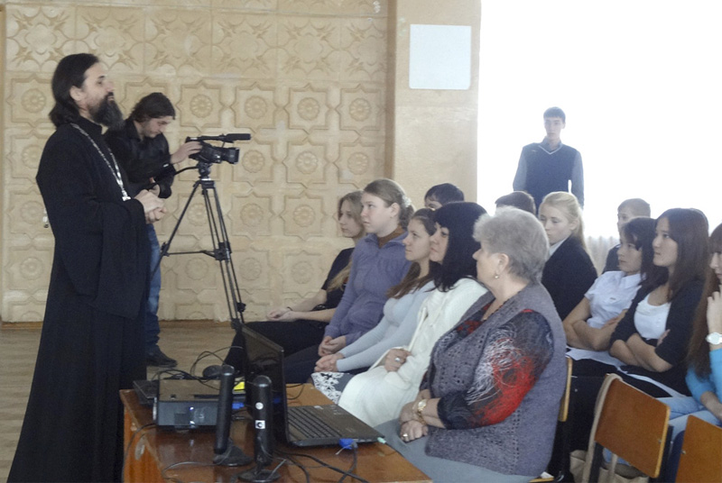 НОВОТРОИЦК. 2 декабря 2013 г. Благочинный Новотроицкого округа, настоятель собора святых апостолов Петра и Павла г. Новотроицка иерей Сергий Кваша посетил общеобразовательную школу № 18 г. Новотроицка, где встретился со старшеклассниками.