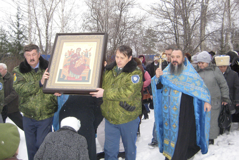 5 декабря после Литургии и чтения акафиста крестным ходом, в сопровождении дружины станичных казаков, икону величественно проводили из Кувандыка в Новотроицкий Петропавловский собор.