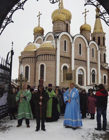 НОВОТРОИЦК. 5 декабря 2013 г. В собор святых апостолов Петра и Павла г. Новотроицка прибыла чудотворная икона Пресвятой Богородицы «Всецарица», которую привезли в Орскую епархию монахи Святой Горы Афон в дар стоящемуся женскому монастырю Иверской иконы Божией Матери.