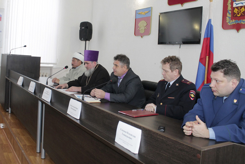 В зале заседаний районной Администрации собрались главы поселковых администраций, руководители отделов администрации и силовых структур Адамовского района, представители религиозных объединений. С сообщением о работе прихода Покрова Пресвятой Богородицы п. Адамовки, направленной на повышение взаимопонимания между народами района, выступил настоятель иерей Вячеслав Кочкин.