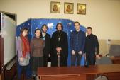 МОСКВА. 22 декабря 2013 г. Руководитель отдела по делам православной молодежи Орской епархии, настоятель храма св. прмцц. вел. кн. Елисаветы ст. Губерли, клирик собора свв. апп. Петра и Павла г. Новотроицка иерей Максим Бражников в качестве гостя побывал на очередной встрече молодежной организации храма всех Святых на Соколе.