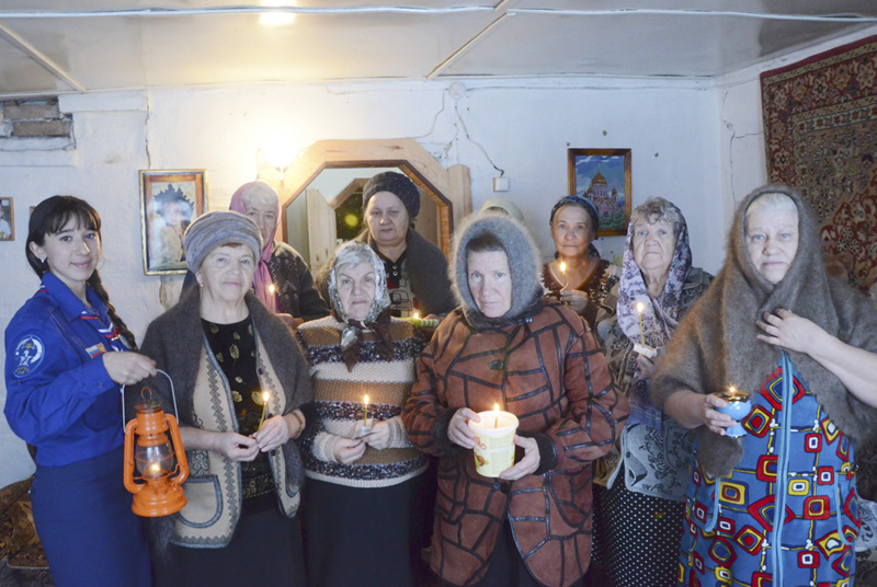 Бабушки-прихожанки с самодельными лампадками встретили желанных гостей в доме церковной старосты, поскольку их долгожданный и недавно построенный храм только утеплили. А теперь такая радость, о которой и не мечтали: огонь из самого места, где родился Господь Иисус Христос! Помолившись вместе, бабулечки разбрелись по селу со своими огоньками, чтобы делиться с родными, соседями светом, повествующим о рождении Спасителя.