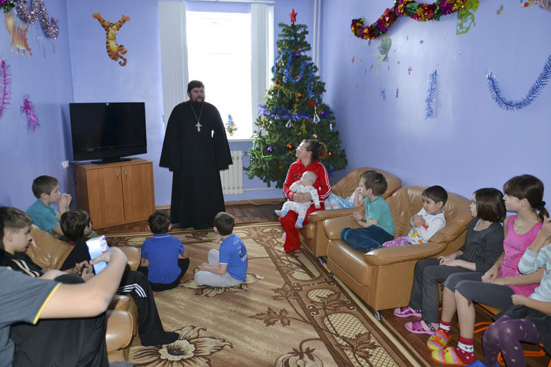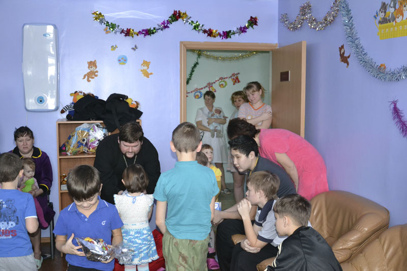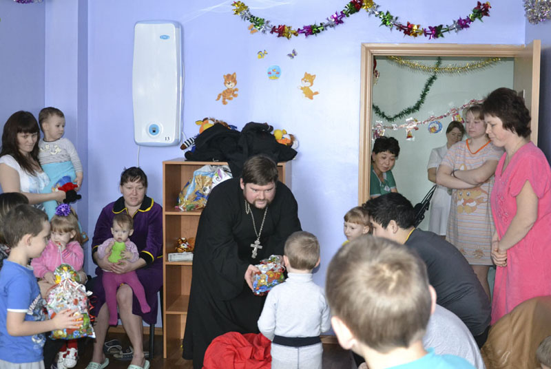 МЕДНОГОРСК. 8 января 2014 г. В день Рождества Христова ответственный за работу по взаимодействию с лечебными учреждениями в Медногорском благочинии иерей Андрей Пелипенко посетил детское отделение Центральной городской больницы города Медногорска.