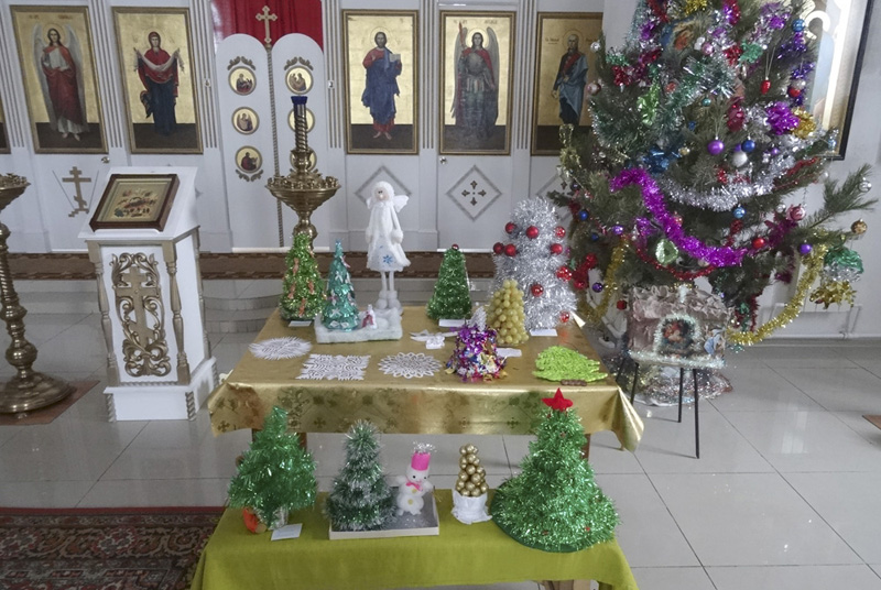 Творчество участников ограничивало одно условие: в изготовлении поделки нельзя было использовать саму природную ель. 16 конкурсантов проявили изрядную смекалку: были представлены ёлки из мишуры, открыток, пластинок и даже ёлка-полка. Настоятель храма иерей Вячеслав Кочкин рассказал историю появления Рождественской ёлки в России. Потом тайным голосованием были определены победители. Первое место заняла ёлка, собранная из ягод винограда, которая оказалась ещё и необычайно вкусной! И, конечно же, никто из участников не остался без подарка. Конкурс так всем понравился, что было решено сделать его традиционным.