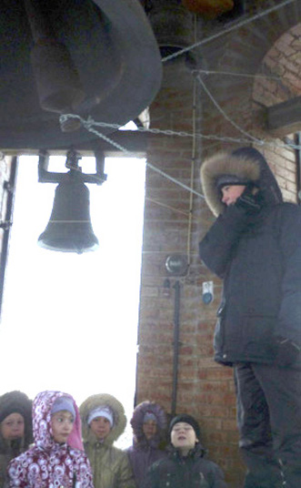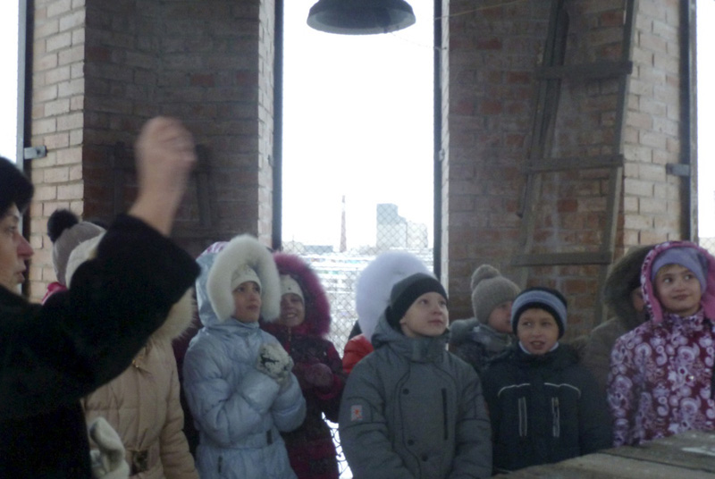 Самым радостным моментом было посещение колокольни. Юный звонарь собора Никита Горянин продемонстрировал ребятам колокольный звон для различных служб. Никита долгое время самостоятельно изучает разновидности колокольного перезвона, ему это очень нравится, а потому он с удовольствием отвечает на вопросы по звонарному делу. К празднику Рождества Христова Никите вручили благодарственное письмо от приходского совета храма за его усердное служение Матери Церкви.