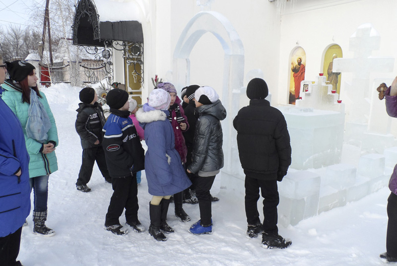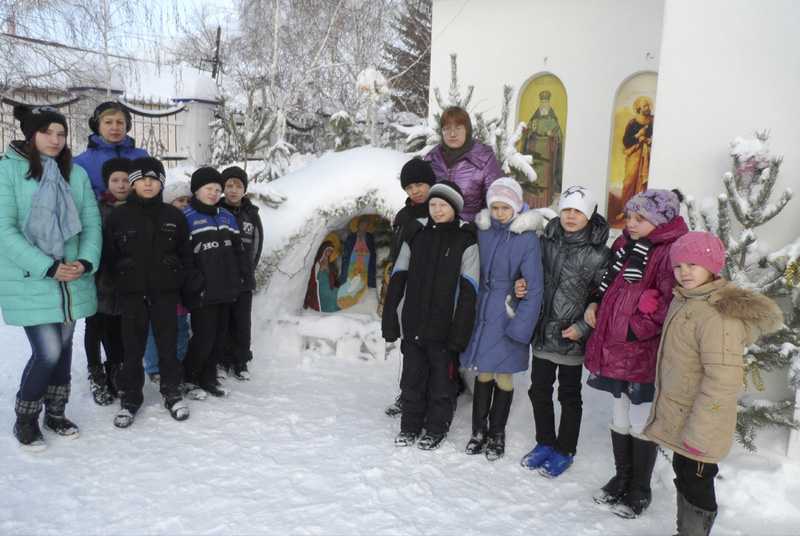 Встреча юных подопечных проходила прямо на церковном дворе, под открытым небом – у Вифлеемского вертепа. Внимание детей привлекла достопримечательность церковного двора – Крест и престол, построенные изо льда и снега. Ребята услышали историю рождения Иисуса Христа - центральное событие в истории всего человеческого рода. Выяснили, почему Святая ночь имеет особенное значение для современной цивилизации.