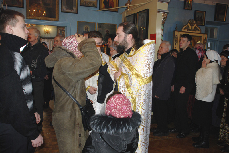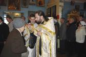 Множество прихожан пришло в храм разделить радость важного события и помолиться на богослужении, которое совершили настоятель храма иерей Алексий Атамасов и диакон Александр Мошков. Во время всенощной состоялось елеопомазание многочисленных верующих. По окончании службы отец Алексий поздравил всех с предстоящим праздником и напомнил, что в полночь состоится праздничное богослужение и великое освящение воды.