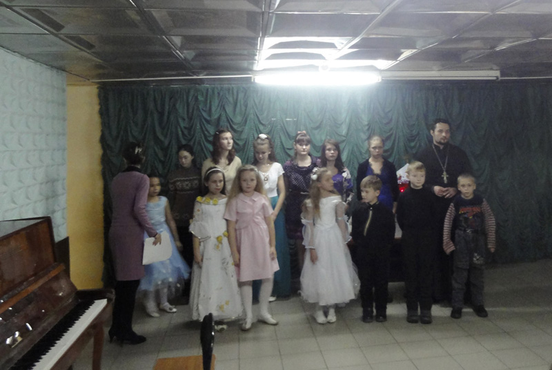 МЕДНОГОРСК. 16 января 2014 г. В святочные дни воспитанники воскресной школы храма святителя Николая Чудотворца (микрорайона Южного) и Медногорской школы искусств вместе с настоятелем храма иереем Максимом Малютой порадовали праздничным концертом детей, проходящих курс лечения в профилактории «Бодрость», и их родителей.