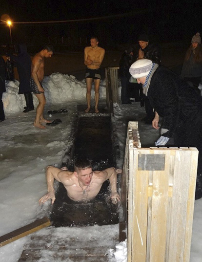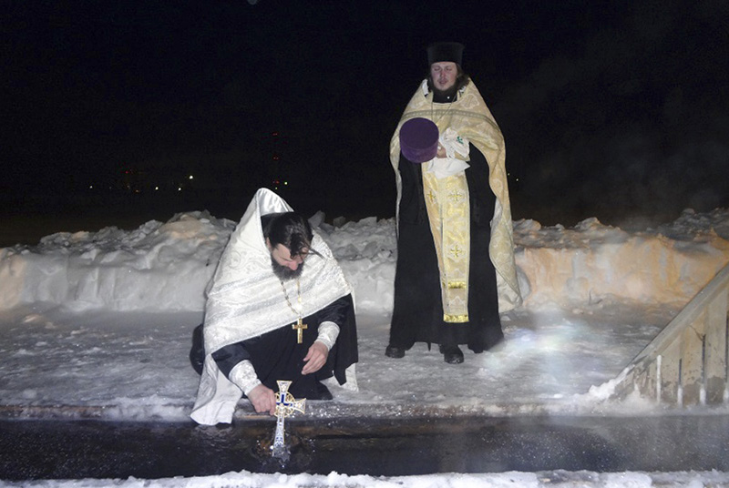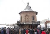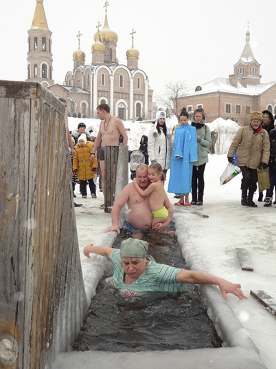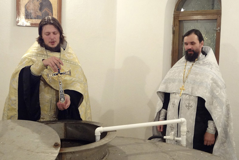 На храмовом озере была оборудована безопасная прорубь: сделаны поручни, пологий спуск и деревянное дно. Эту заботу горожане оценили по достоинству. После освящения воды верующие стали погружаться в прорубь, а также набирать крещенскую воду в свои сосуды.